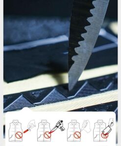 Unlike stab resistant clothing, which uses a relatively effective cloth material, our knife proof body armor is a combination of heavy weight black carbon fibre mixed with lighter and more flexible white carbon fibre, producing extremely hard armor surfaces, along with the flexibility and garment weight you’d expect from a practical and wearable jacket. Additionally, there’s no vulnerable attack areas on this cut proof jacket, with the zipper-underlay and the collar outfitted with the same stab proof body armor materials.
