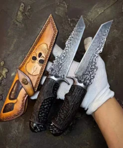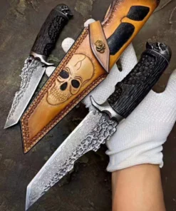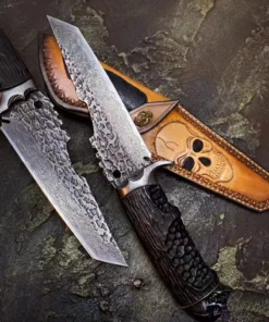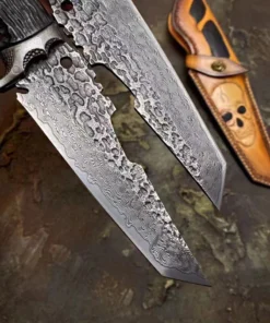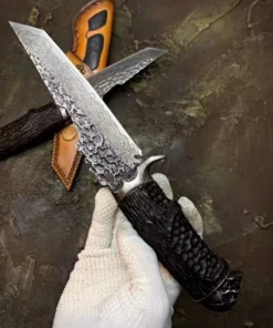 The construct is a full tang forge of Damascus steel + VG10 steel core, producing 103 layers of steel. This layered steel creates an unmatched razor sharp blade, which is also naturally resilient against chipping and fracture damage.