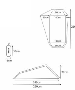 - Tent flysheet material: 210T tear resistant polyester – tape seam sealed (PU3000MM waterproof index).