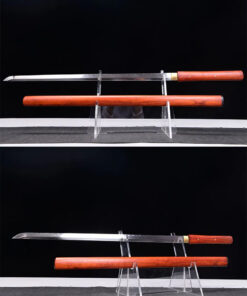 Equipped with a T10 steel sword blade, which is a modern, highly refined, iron base-steel alloyed with a high on average 1.0% carbon content, along with small amounts of tungsten, manganese and silicon.