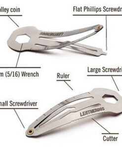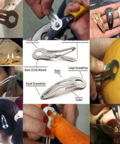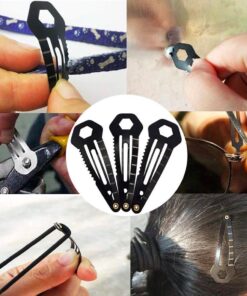 Multifunction hairpin tools: Measuring ruler, serrated-cutter, 8mm-wrench, 2x screwdriver options, hairpin.