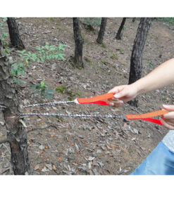 With a saw blade constructed from interlinked Manganese steel, the saw chain is flexible, efficient and razor sharp. Furthermore, long ropes can be attached to the high grip – twin loop handles, which then allow the saw to be slung over high tree branches, otherwise un-reachable from the ground. This can really aid the survivor in reaching beehives and fruit high up in tall trees.