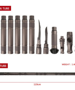 - 6x tube – tactical staff hiking stick: Overall length – 119cm; weight – 1.4kg.