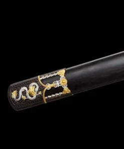 - Sword & scabbard fittings material: Hand-carved pure copper, with many decorations plated in genuine gold & silver.