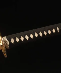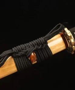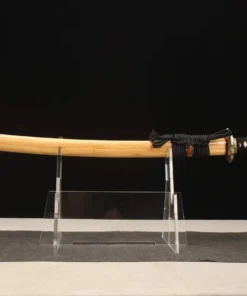 Equipped with a T10 steel sword blade, which is a modern, highly refined, iron base-steel alloyed with a high on average 1.0% carbon content, along with small amounts of tungsten, manganese and silicon.