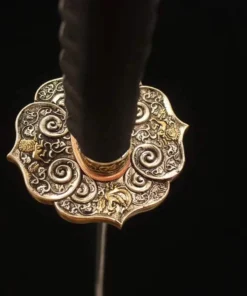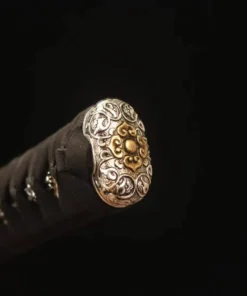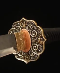 Entirely tastefully compiled and intricately infused into the sword’s fittings with masterful illustrations of the flower, dragon, lion and pheasant. Each symbol is embedded with ancient mythological and philosophical significance – very real and important symbolic beliefs to the Japanese Samurai warrior.