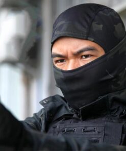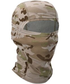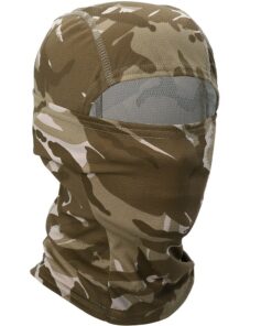This camouflage face mask will cover a user’s entire head and face – leaving only the eyes exposed.