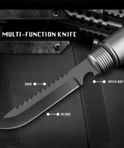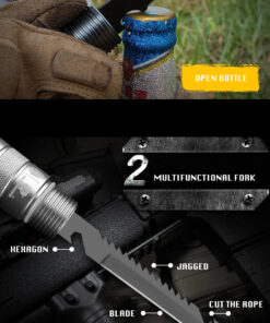 - Incorporated tools: 5x handle connection tubes; multifunction knife/saw; survival knife/saw; compass attachment; glass-breaker attachment; emergency whistle; tactical spike attachment; Phillip & flat screwdriver bit; 2x carry bags.