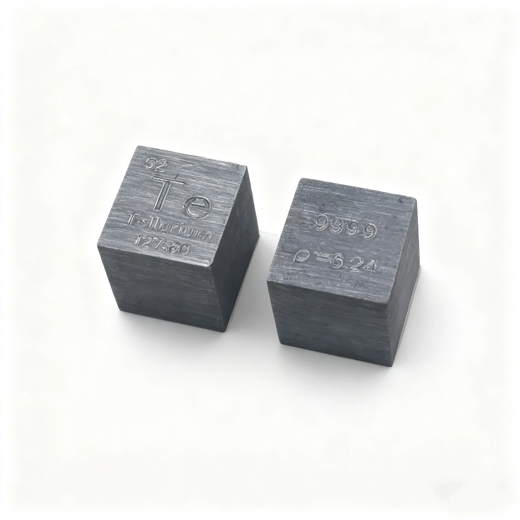 - Block engravings include – chemical symbol (Te), atomic number (52), atomic weight (127.60), element density (p=6.24g/cm3) and purity (99.99%).