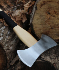- Balanced double bladed axe – thrown with two hands, yet small enough to generate great speed, along with a firm impact weight.