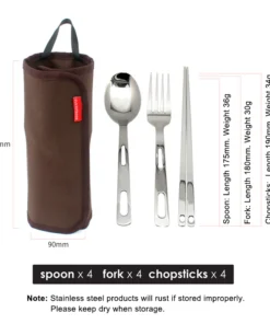 Included: 4x chopsticks; 4x tablespoons; 4x dinner forks; 1x storage bag.