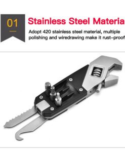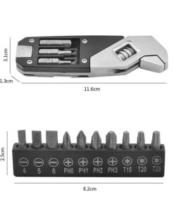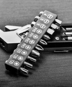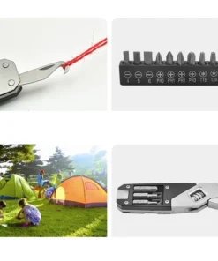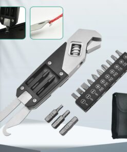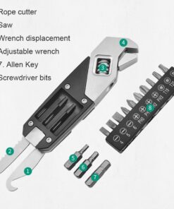 - Incorporated tools: Adjustable spanner; saw; rope cutter; screwdriver housing; 3x hex bits; 10x screwdriver bits.