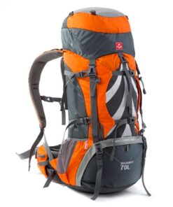 This backpack is constructed from waterproof nylon material ensuring your gear will stay dry on the trail, and with an additional external waterproof rucksack cover to ensure your packs contents remains dry even durning heavy downpours. Standard features include an internal aluminium frame, cushioned back pads, hip pads, shoulder straps and an effective waist and chest strap.