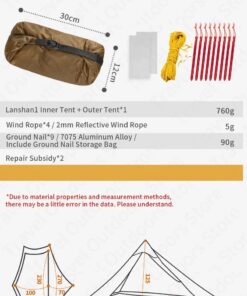 - Tent peg material: Aluminum alloy.