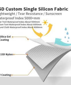 - Tent fly sheet material: 15D nylon – silicone coated (PU5000mm waterproof index).