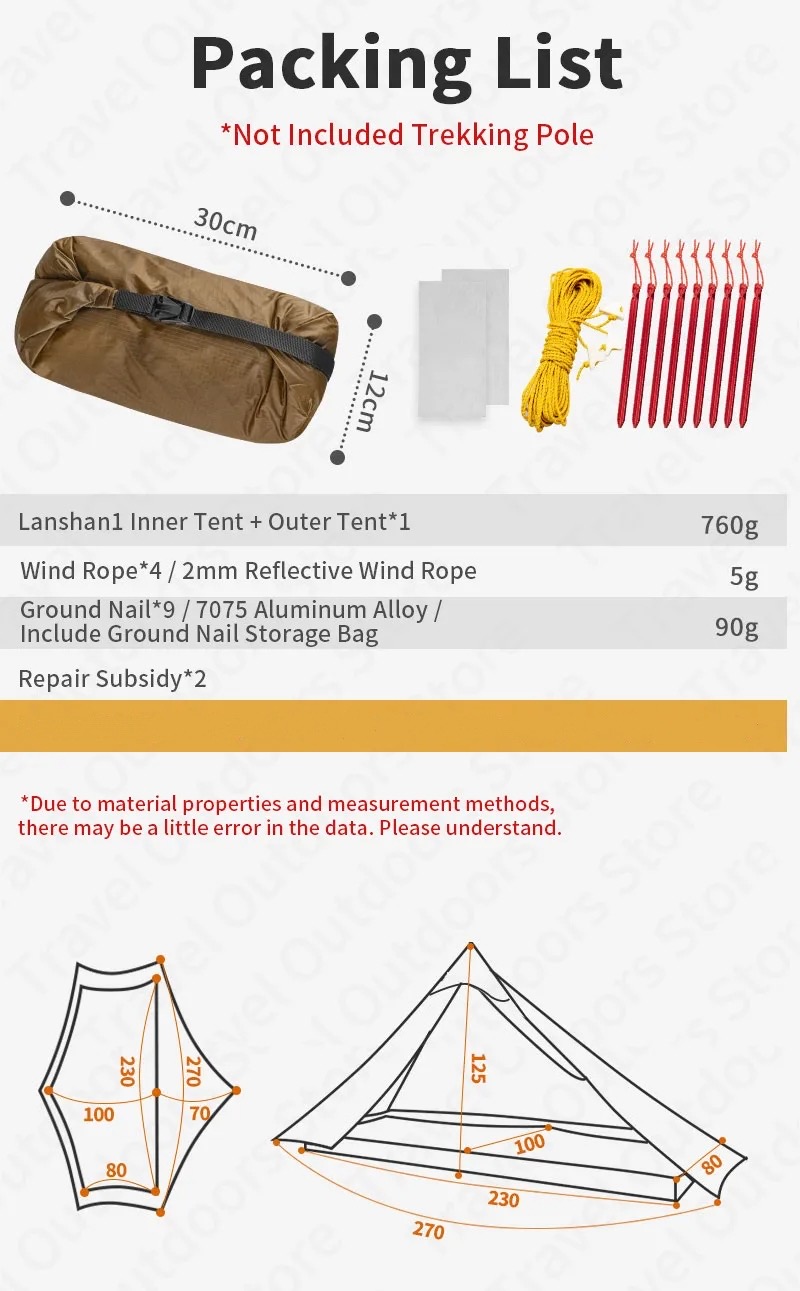 Trekking Pole Tent Specifications: