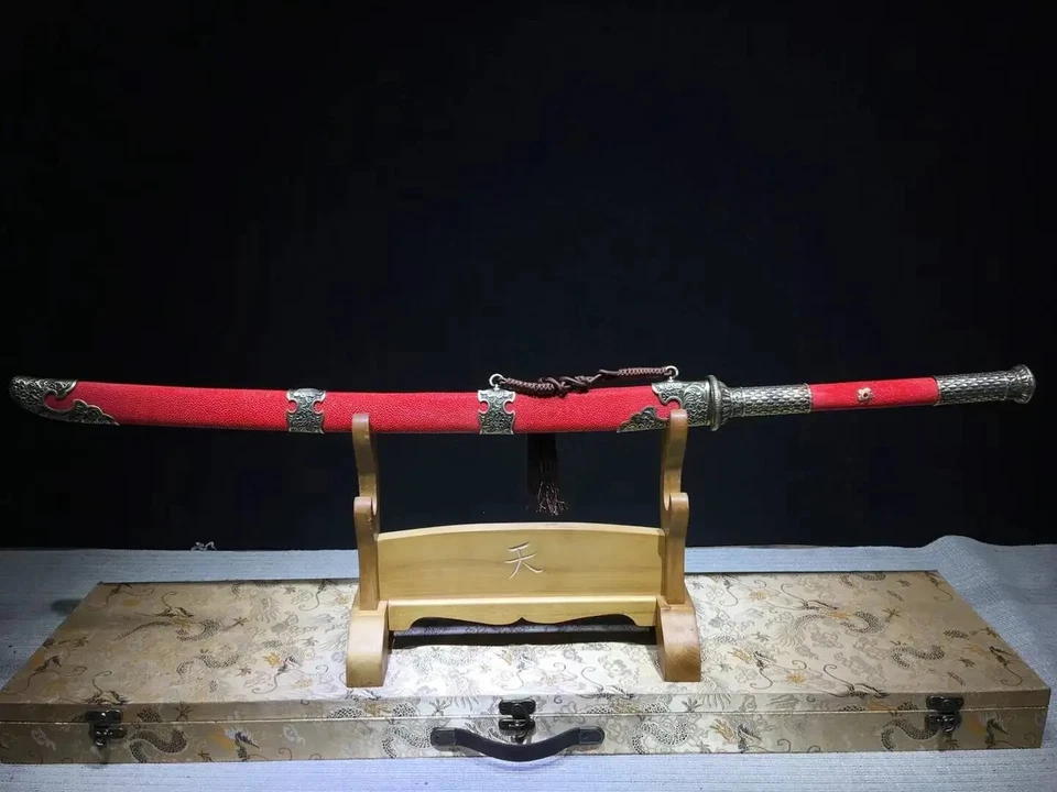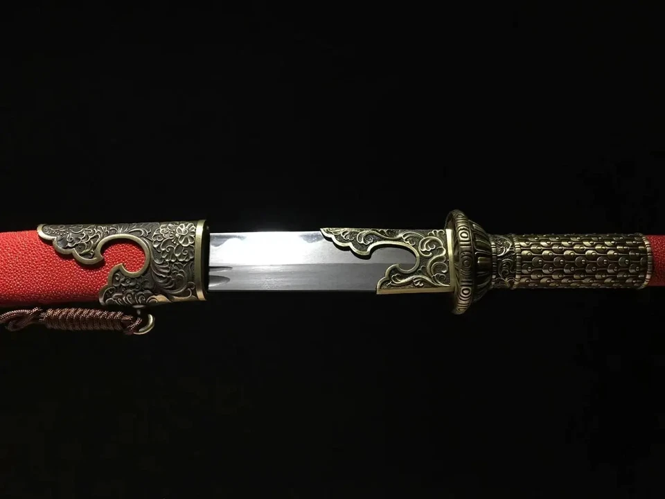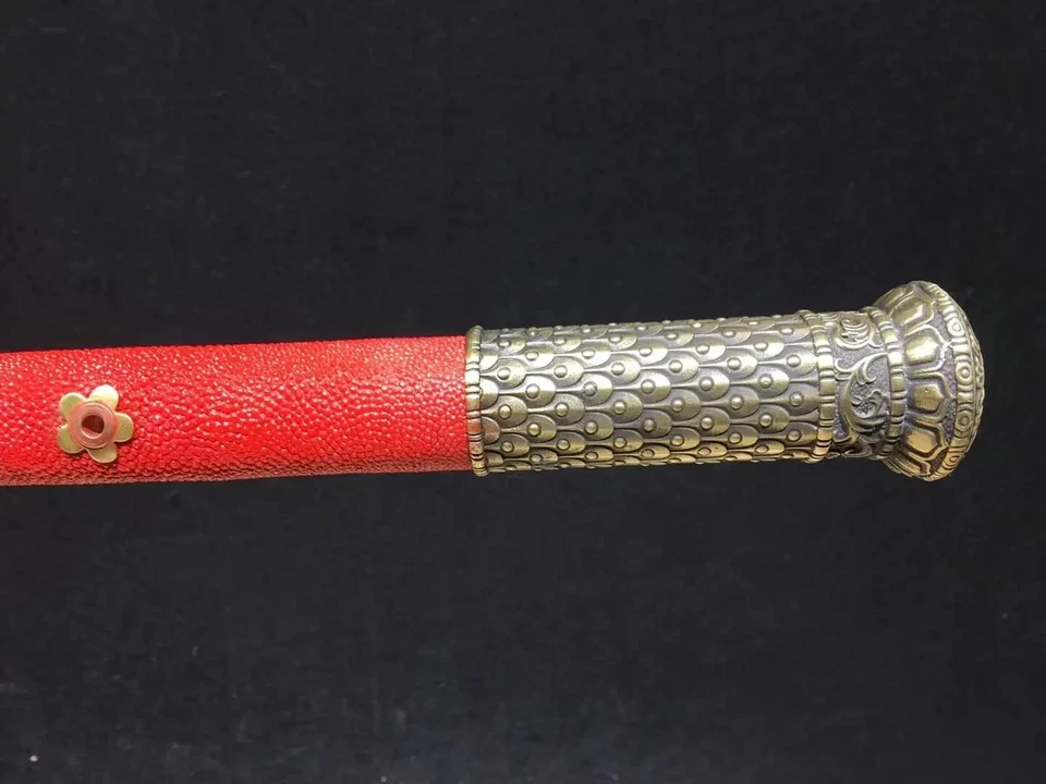 - Sword and scabbard fittings material: Pure copper, hand carved.