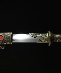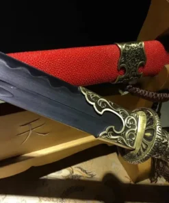 Very similar in design to a Japanese Katana sword, with exception to its lengthy 34cm handle, compared to a Katana’s 26cm handle length. With this extra-long handle, this regional classic Chinese sabre sword has the capacity to produce devastatingly powerful cutting and slashing blows, as well as effective thrusting attacks.