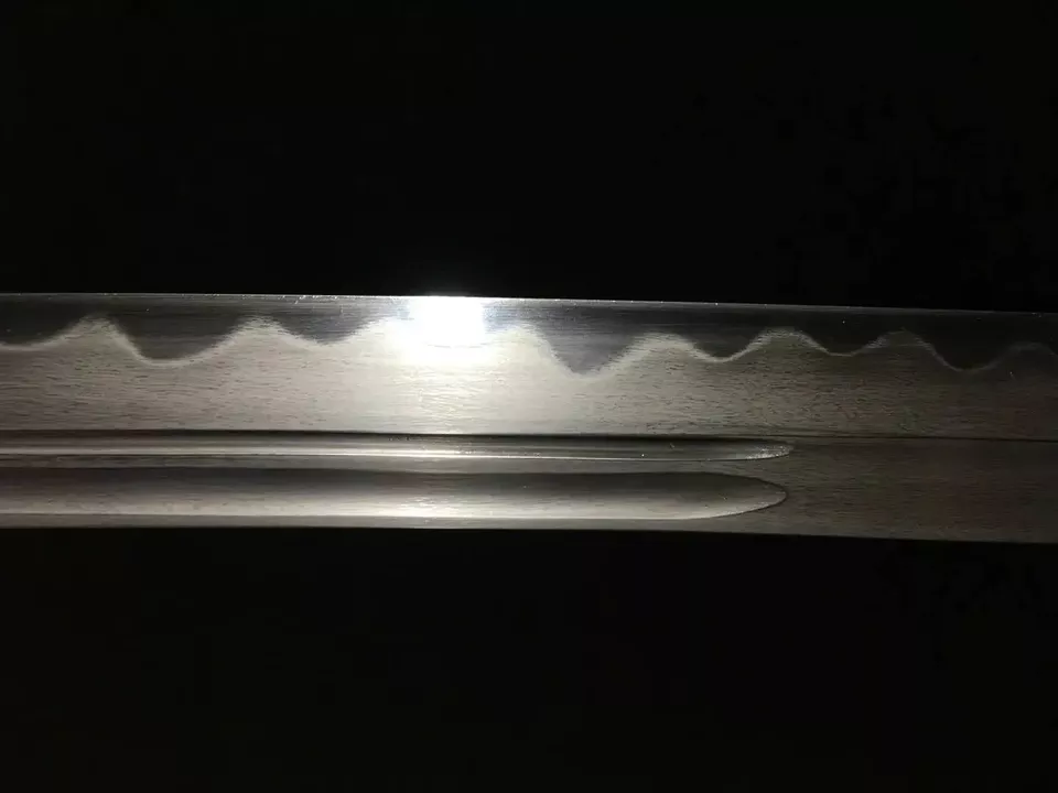 - Tempering process: Genuine clay tempered sword blade, with visible Hamon.