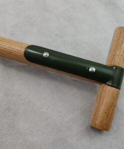 Fixed to the spade is a hardwood T-shaped handle with steel bracing. This style of “T” handle was especially favorable for digging down as an entrenching tool.