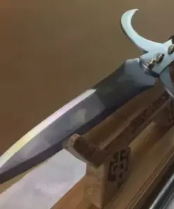 - Deadly thrusting spear, with long blade edges and two auxiliary hooked sickle tips.