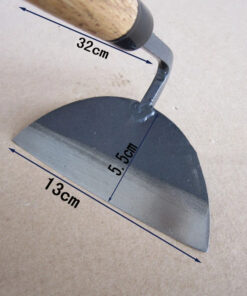 - Centered handle weed tool size: Overall length – 32cm; wooden handle length – 26cm; blade length – 13cm; blade width – 5.5cm.