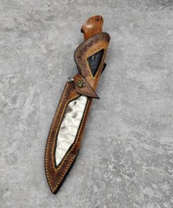 Housed within a hand carved and stitched leather sheath, this bushman knife is highly collectable and a pleasure to both own and use in the field.