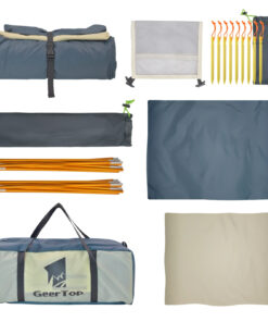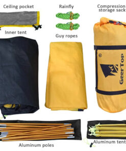 - Included: 1x inner tent; 1x fly sheet; 10x tent stakes; 2x folding poles; 1x tent carry bag.