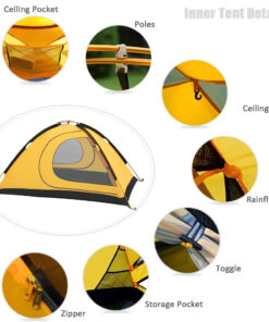 - Two layer, 4 season tent – lightweight 4 season tent with inner tent & outer rain tent fly clear divide, along with a full perimeter snow skirt.