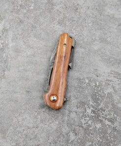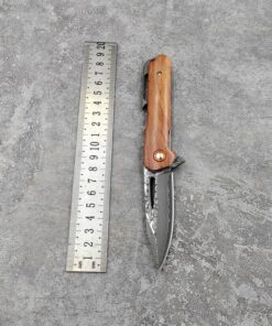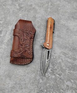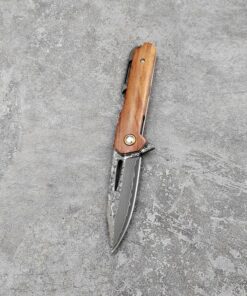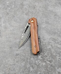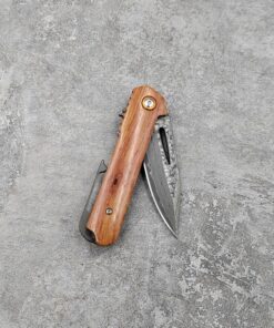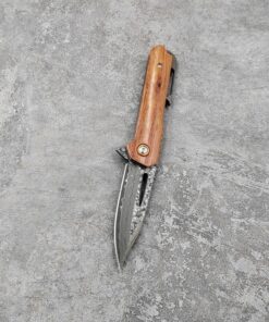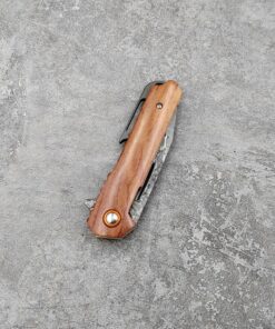 The folding blade construct is Damascus steel + VG10 steel core. This sandwich layered steel sharpens to a razor sharp degree, and holds naturally resilient properties, protecting the blade from fracture and the edge from chipping.