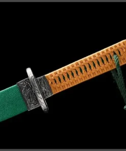 Equipped with a very special folded steel blade, which is a hammer-welded mixture of local, self-refined steels, folded multiple times to remove impurities, creating many hundreds of individual steel layers, finally producing arguably the best sword-making steel available.