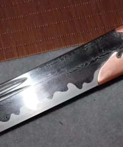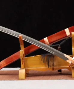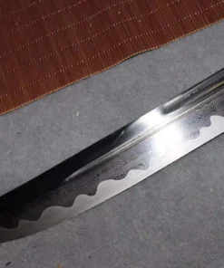 Equipped with a very special folded steel blade, which is a hammer-welded mixture of local, self-refined steels, folded multiple times to remove impurities, creating many hundreds of individual steel layers, finally producing arguably the best sword-making steel available.